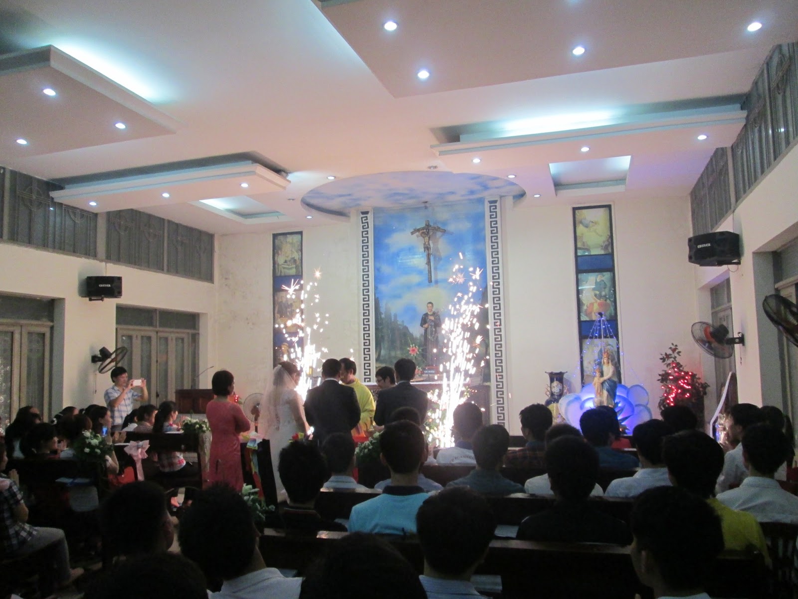 Đi giữa muôn hoa, dưới ngàn ánh điện lung linh và vòng tay yêu thương Cộng đoàn Vinh, gia đình và bạn bè. Đêm nay anh Antôn Phùng Anh Tuấn và chị Maria Nguyễn Thị Hải hạnh phúc tay trong tay tiến lên bàn thờ dưới sự chủ tế của Linh mục Gioan Lưu Ngọc Quỳnh anh chị đón nhận bí tích hôn phối trở thành vợ chồng theo luật Hội thánh Công giáo.